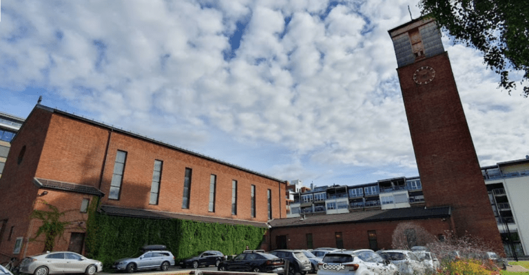 Lillestrøm church is built in brick/stone. Over time, several cracks have developed in the building, especially in connection with the tower and the parish building on the right...